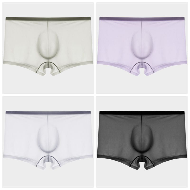 This item features a seamless, no-chafe pouch that provides a naked feel while still being supportive. Crafted from sheer ice silk, these trunks offer exceptional elasticity for a truly unrestricted fit. Experience ultimate freedom of movement with luxurious comfort.